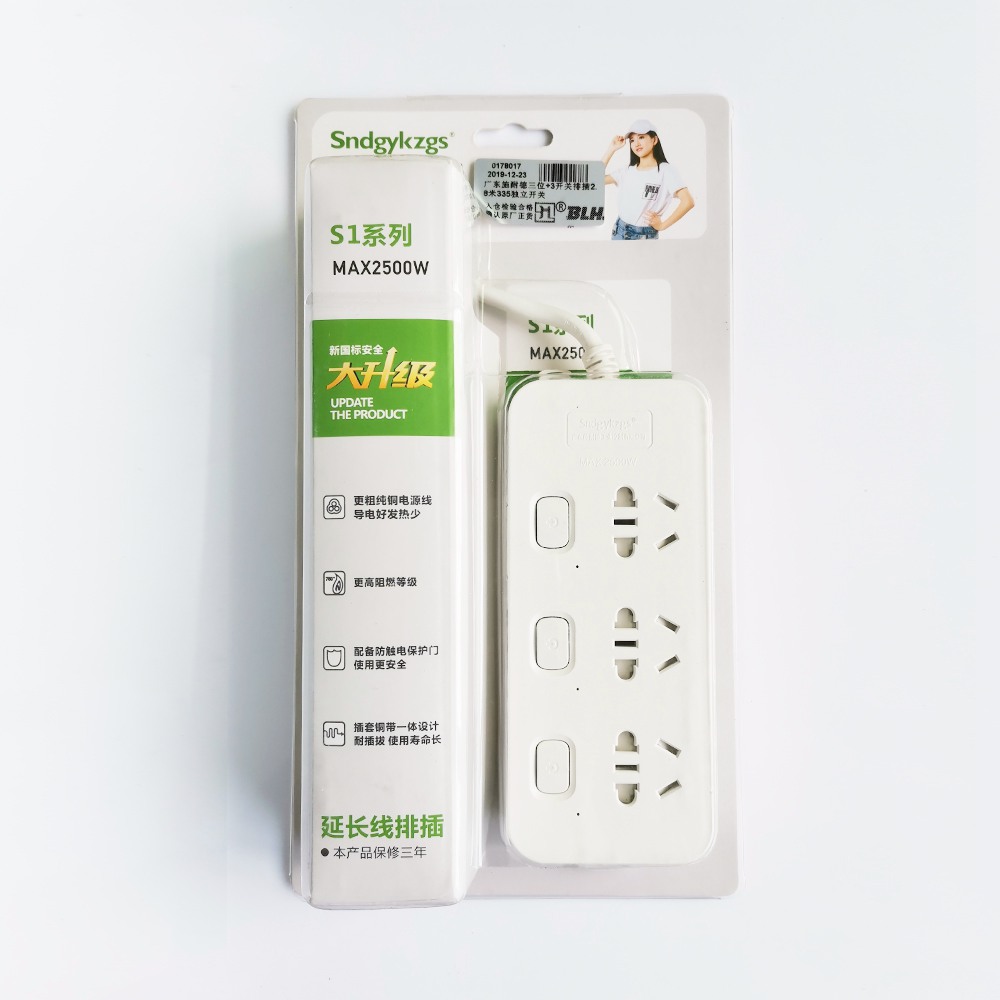 1.8米/2.8米/4.5米  三位+3獨立開關排插